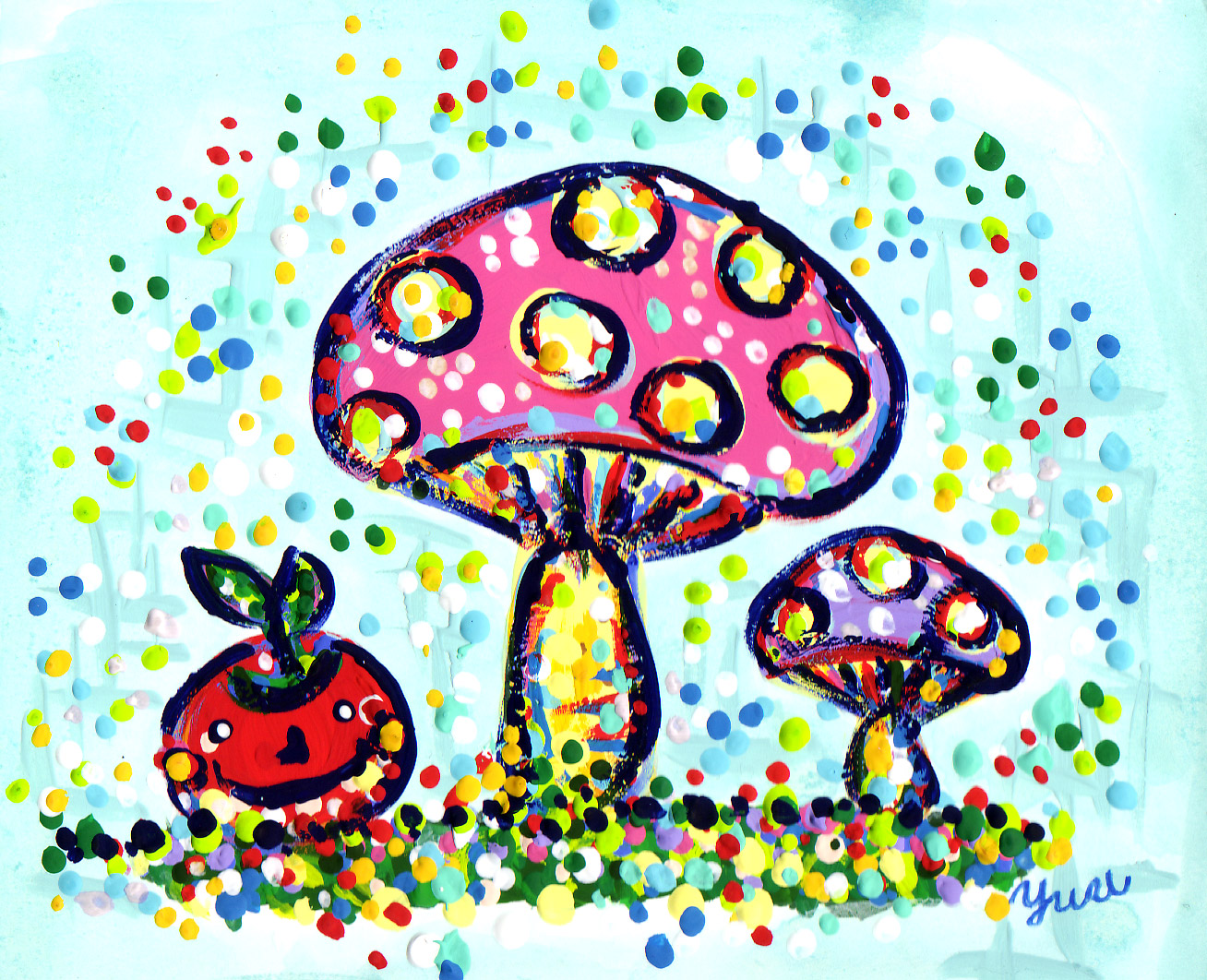 教会員の優太ロンさんが描いたイラストを展示しています。 |